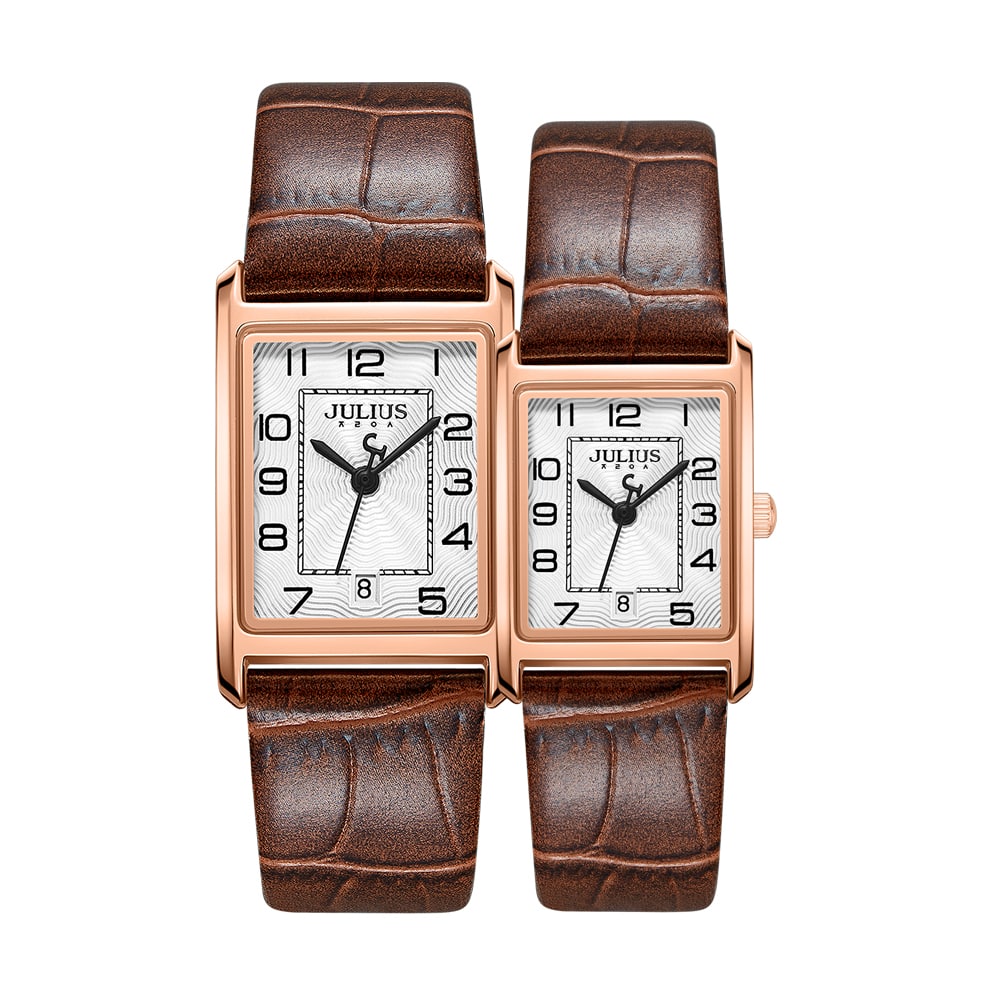 Đồng Hồ cặp JA-1494LB/MB Julius Hàn Quốc Dây Da (Nâu)