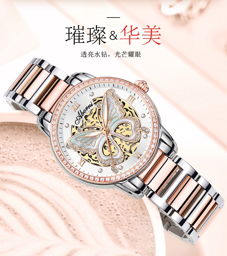 ABORNI là thương hiệu đồng hồ với đặc trưng thiết kế hiện đại pha nét thanh lịch, hướng đến người dùng trẻ trung nhưng vẫn mong muốn sự tinh tế trong từng chi tiết. Các sản phẩm của ABORNI thường sử dụng máy quartz chính xác, cùng với chất liệu hợp kim nhẹ, dây đeo silicone hoặc thép không gỉ, và đạt khả năng chống nước khoảng 3 ATM — phù hợp với các hoạt động hàng ngày như rửa tay, đi mưa nhỏ nhưng không dành cho bơi lội sâu.