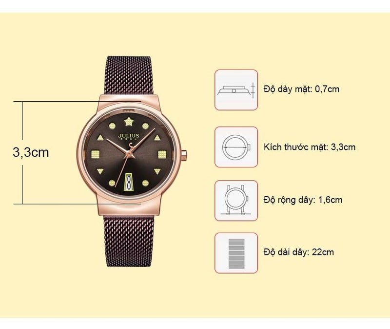 Julius thương hiệu đồng hồ thời trang hàn quốc, chất lượng Nhật Bản sang trọng đẳng cấp và sắc màu tinh tế. Giúp chủ nhân tỏa sáng trước mọi ánh nhìn.