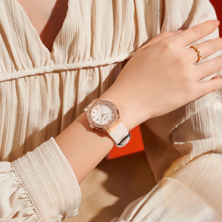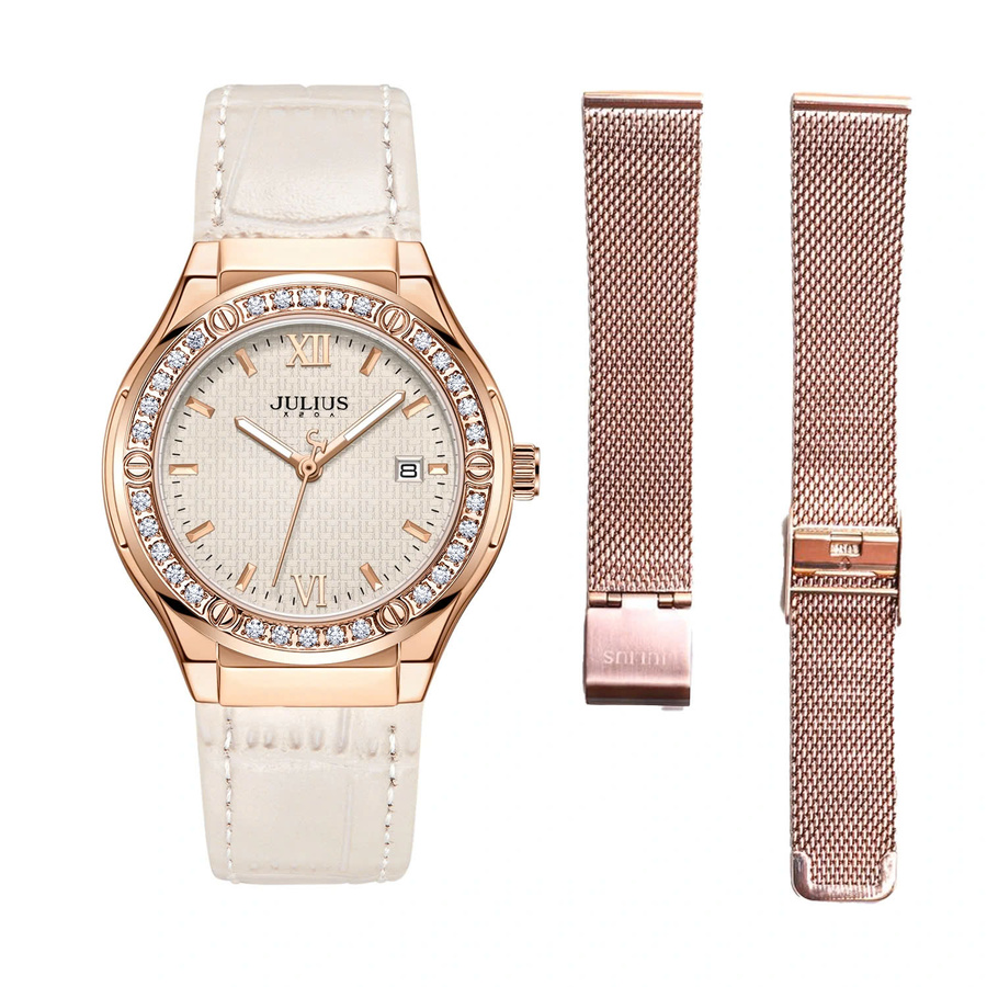 Combo Đồng Hồ Nữ JA-1395C + Kèm Dây Thép Julius Hàn Quốc (Trắng)