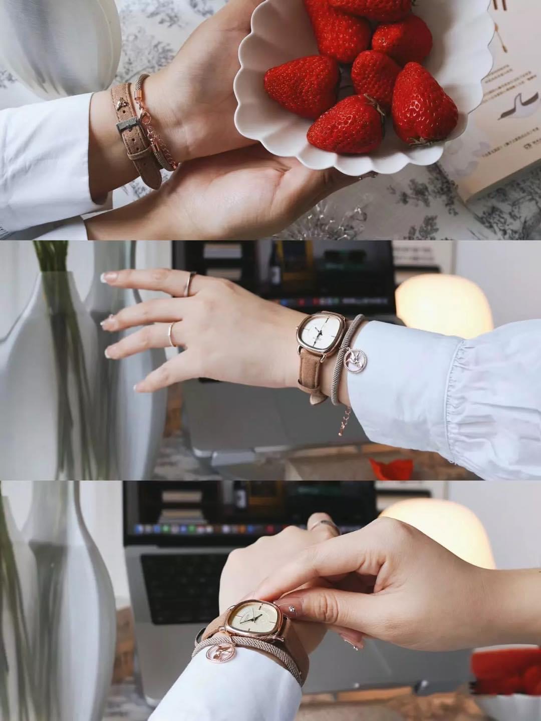 Chất liệu vỏ máy: Hợp kim mạ ion vàng hồng, đây là mẫu đồng hồ nữ sử dụng công nghệ mạ IP chân không tiên tiến giúp đem lại độ sáng bóng và bền màu